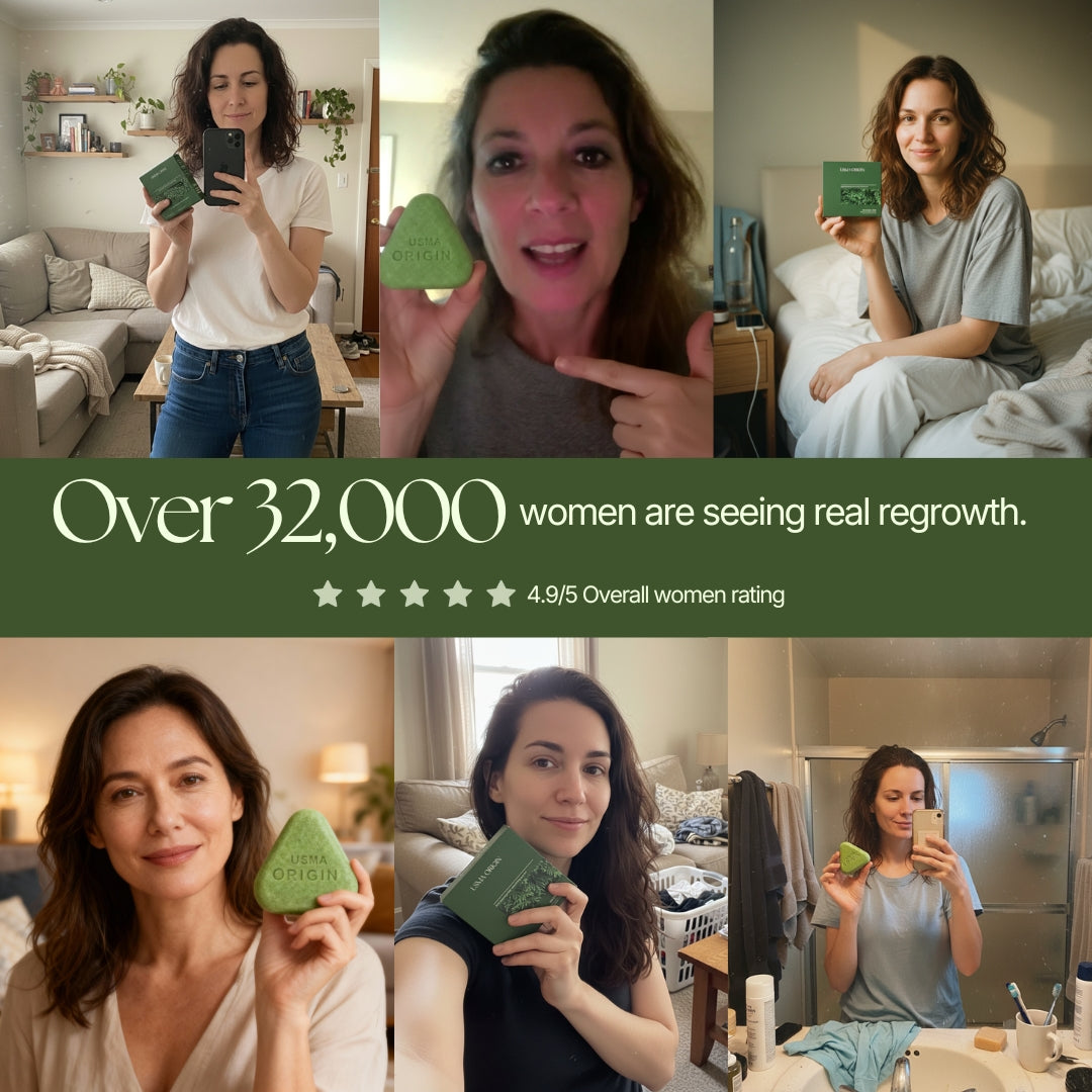 The original Usma-powered shampoo bar trusted by 32,000+ women to reduce shedding, soothe the scalp, and bring back fuller-looking hair.